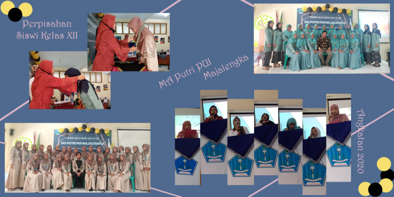 Majalengka (24/6), berlangsung acara perpisahan kelas XII MA Putri PUI Majalengka angkatan 2020 yang sempat tertunda akibat kondisi Indonesia yang mengalami pandemi virus covid-19. Acara perpisahan ini dihadiri oleh siswi kelas XII, dewan guru dan tata laksana, pengawas, perwakilan orang tua, tamu undangan beserta perwakilan siswi kelas X dan XI yang sekaligus bertugas sebagai panitia.
