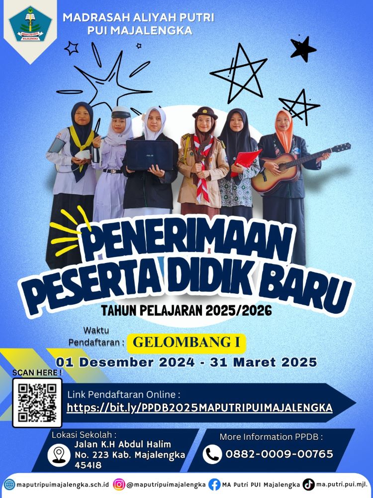Mari bergabung bersama kami di MA Putri Pui Majalengka dengan mendaftar sebagai Peserta Didik Baru Tahun Ajaran 2025/2026
